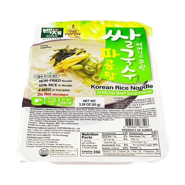 韓國BAEKJE 韓式速食米粉 牛肉湯口味 93g【沖泡即食】