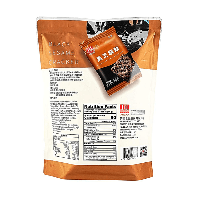 台灣ANBAO安堡 黑芝麻餅乾 192g【全素】