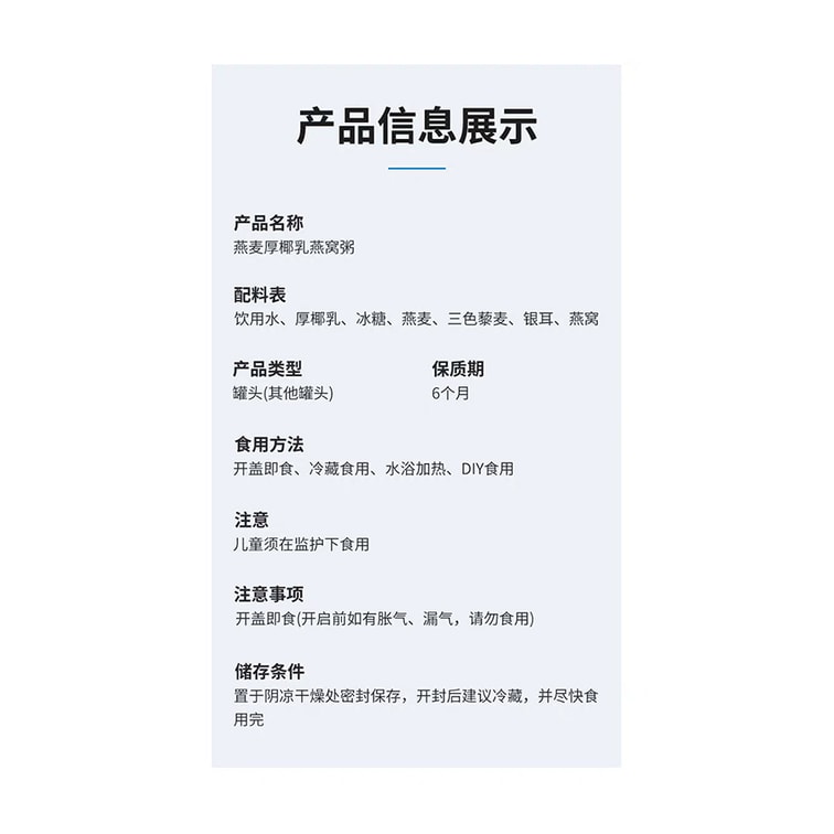 | 口味 | 燕麥厚椰乳燕窩粥 |