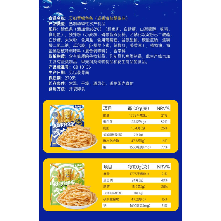 【中國直郵】 卜奇脆 鱈魚條深海鱈魚絲胡椒海鹽味32g*3袋