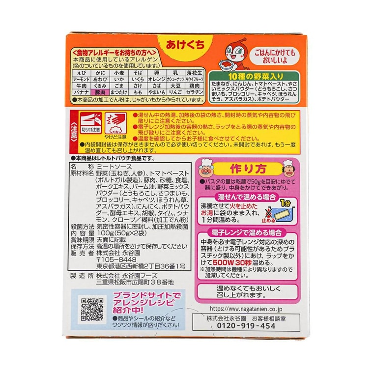日本NAGATANIEN永谷園 麵包超人 兒童番茄義大利麵醬 100g