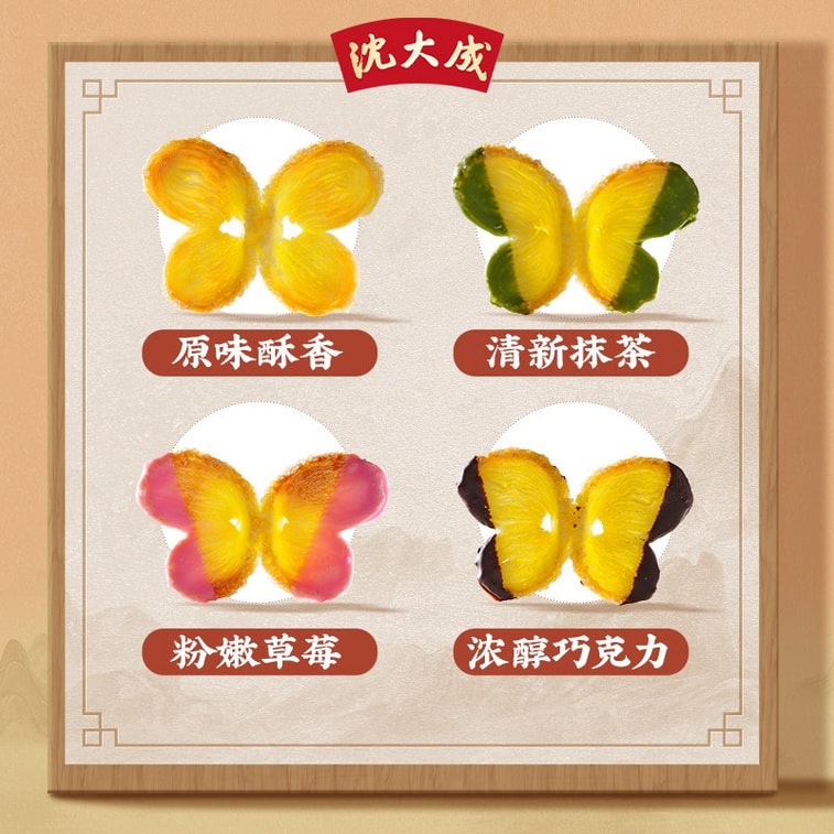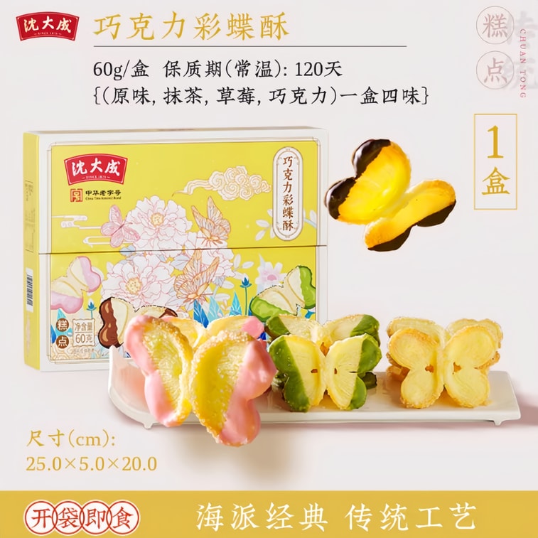 【中國直郵】 沈大成 四種口味蝴蝶酥彩蝶酥 60g 上海特產老字號 經典原味巧克力抹茶草莓 西式酥餅特色糕點