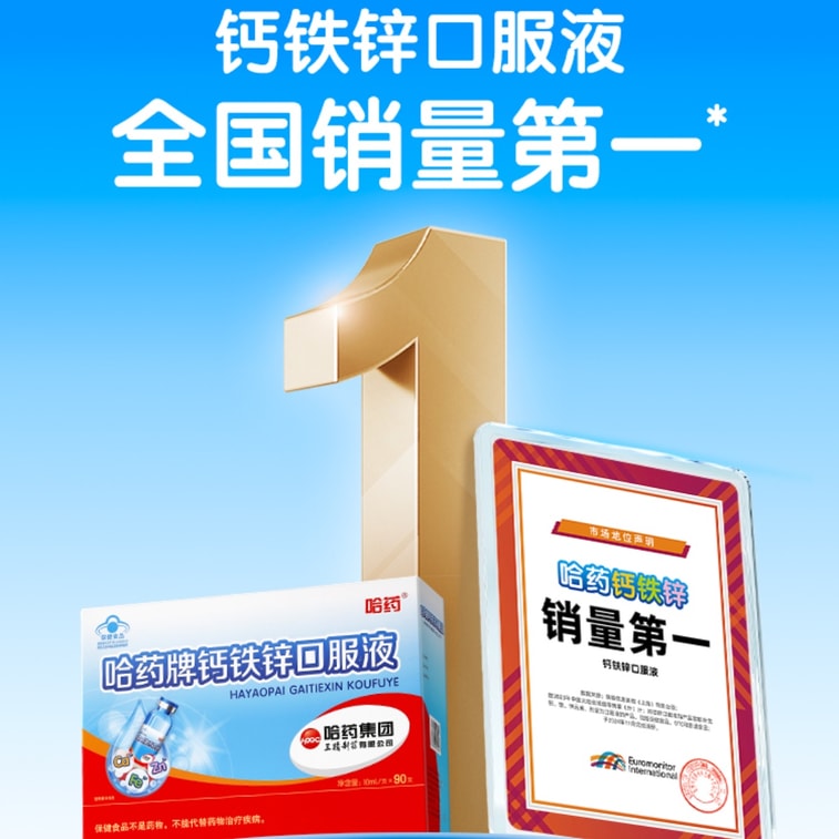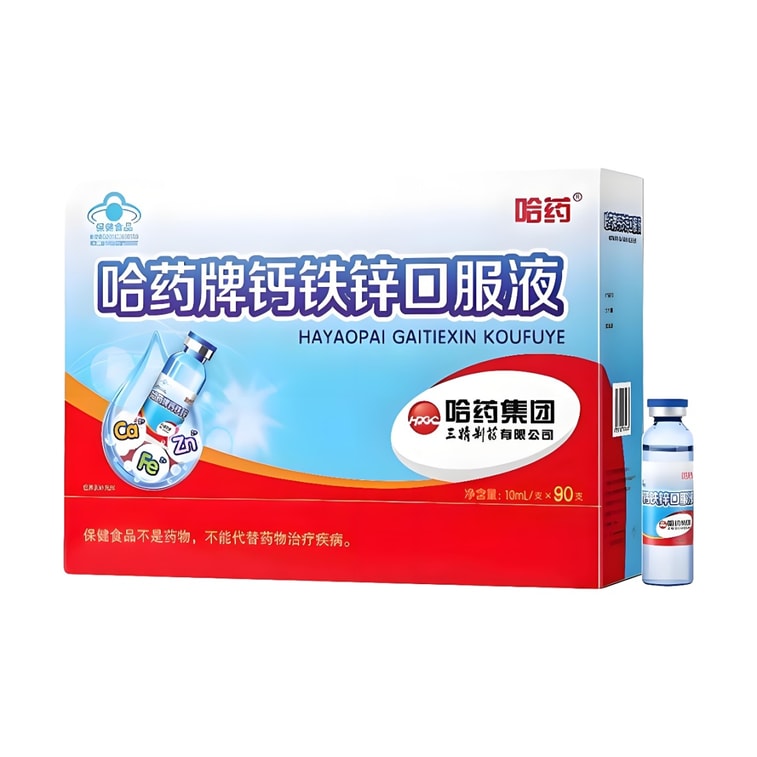 【中國直郵】 哈藥 鈣鐵鋅口服液 90支*10ml 900ml 三精藍瓶葡萄糖酸鋅液體兒童補鈣口溶液