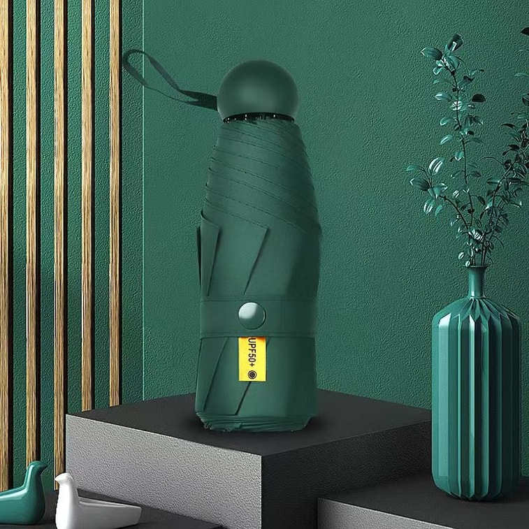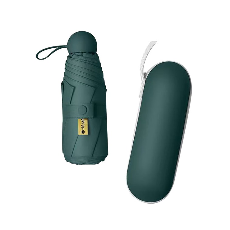 Fancy Jasmine 膠囊防曬紫外線遮陽傘 1把墨綠色 晴傘兩用迷你折疊超輕小巧便捷