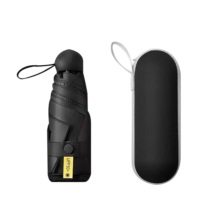 Fancy Jasmine 膠囊防曬紫外線遮陽傘 1把黑色 晴雨傘兩用迷你折疊超輕小巧便捷
