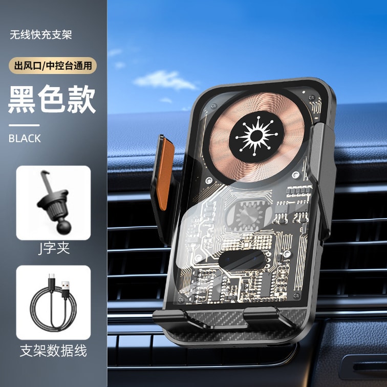 【中國直郵】RAMBLE 車載無線充手機感應支架 黑色/個 汽車導航車用支架 龐克風設計