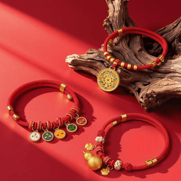 【中國直郵】 寵物時光 貓咪新年項圈小狗裝飾喜慶禮盒禮物紅繩寵物掛牌福祿雙全4-15斤M碼20-40cm*1件
