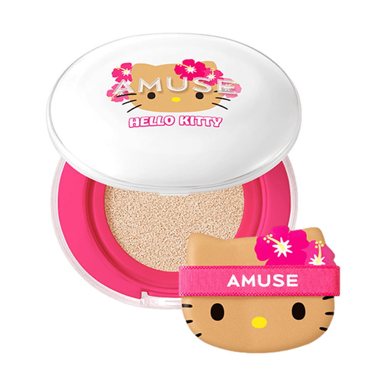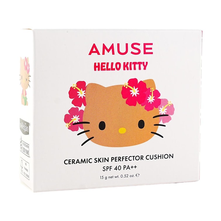 【油皮必備】韓國AMUSE 陶瓷霧面氣墊粉底小白盒 純素 24h持久持妝 SPF40 / PA++ #01 PORCELAIN 19-21號 冷調生機白【黑皮Hello Kitty聯名限定版】