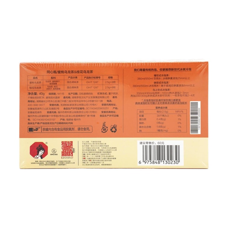 【江南茶飲】【全美超低價】茶顏悅色 方罐冷泡茶 同心瓶禮盒 蜜桃烏龍味+桂花烏龍味 40g