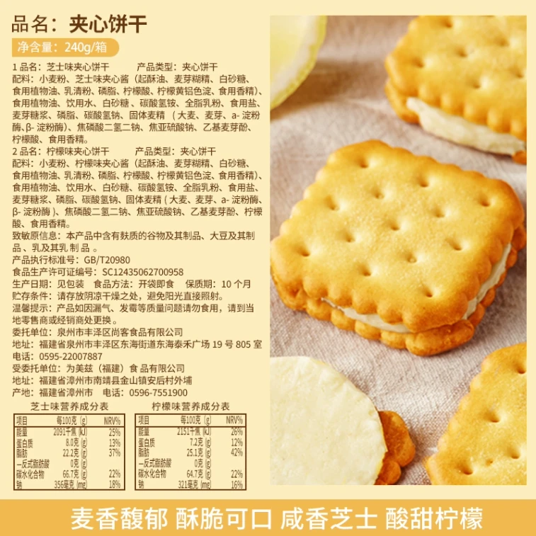 【中國直郵】 尋脆記 起司口味夾心餅乾辦公室休閒點心100g*5盒