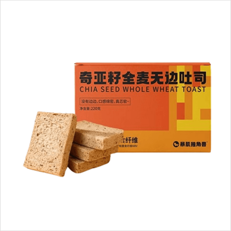 【中國直郵】 暴肌獨角獸 奇亞籽全麥無邊吐司 220g*1箱 無邊吐司全麥麵包0低脂肪卡減奇亞籽熱量早期餐