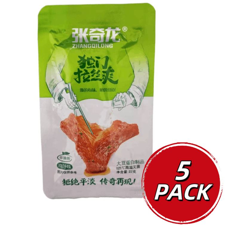 【中國直郵】張奇龍獨門拉絲爽豆乾手撕素肉辣條休閒零食豆製品素肉素牛排老莫 雞汁味 13g*5袋