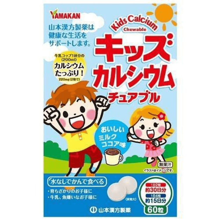 【日本直郵】YAMAMOTO山本漢方製藥 兒童鈣營養咀嚼片 牛奶可可味 60粒 新舊版本隨機發