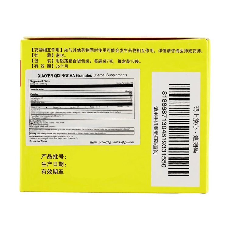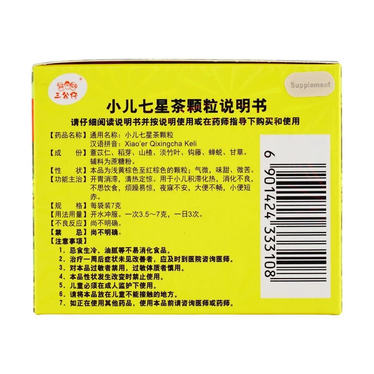 王老吉 三公仔小兒七星茶顆粒 10袋入 用於小兒大便乾 小便黃 消化不良 睡不香 口舌生瘡