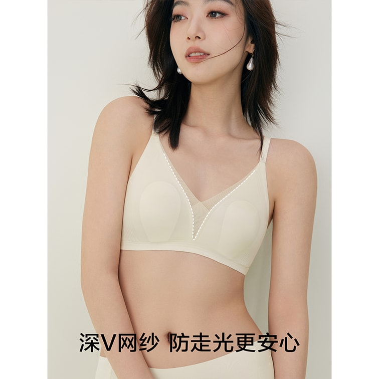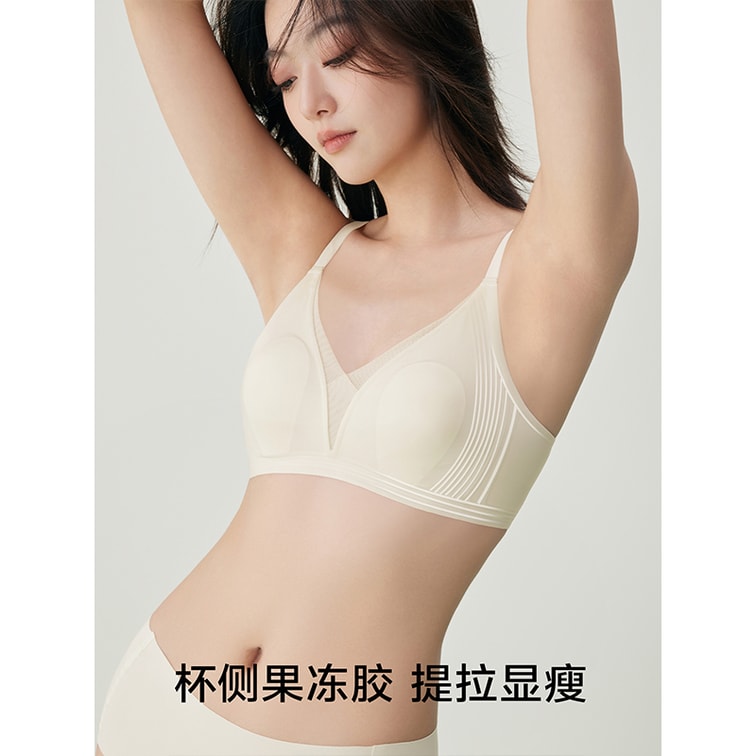 【中國直郵】 草本初色 2025新款超薄兔耳杯胸罩液態果凍軟支撐 無痕內衣胸罩 奶油白 M [90-105斤]*1件