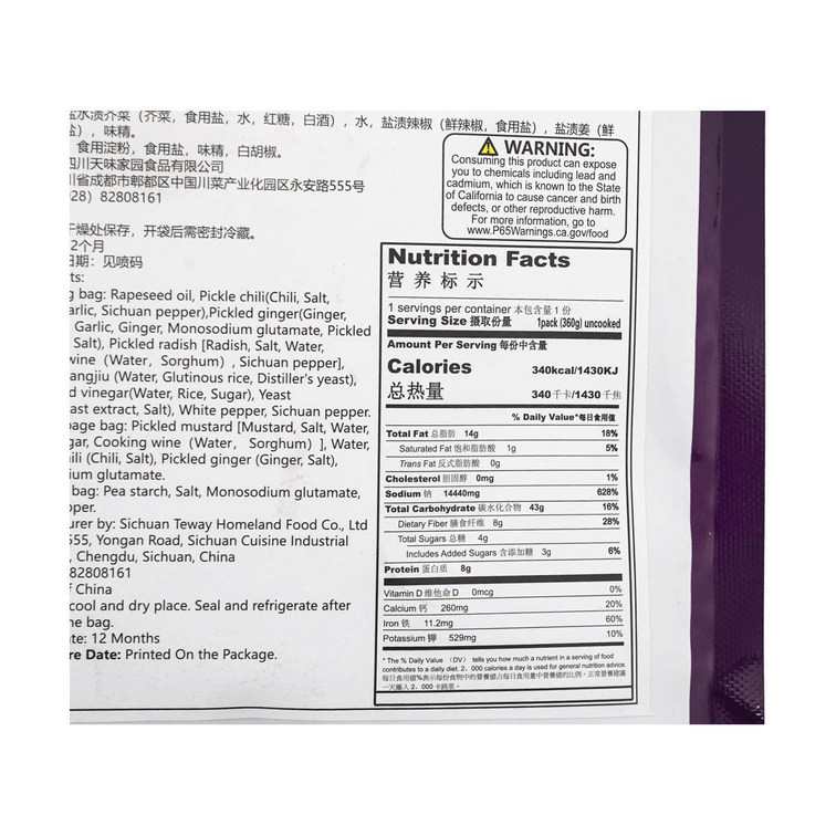 | 口味 | 老壇酸菜魚 |