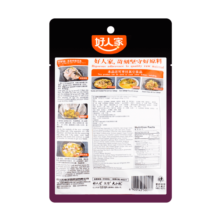 好人家 道地低鹽醃製老壇酸菜魚調味料 360g *3【3份超值裝】