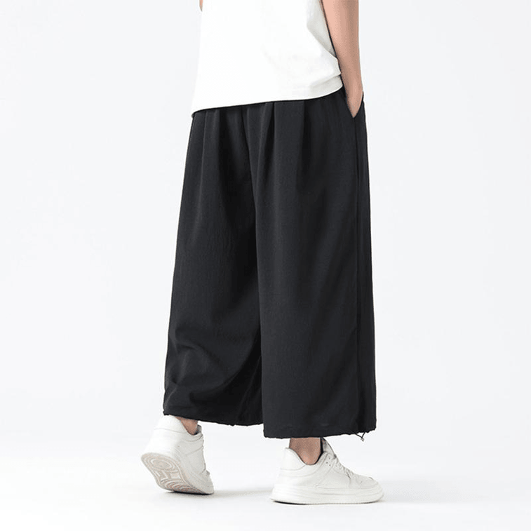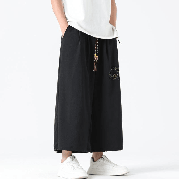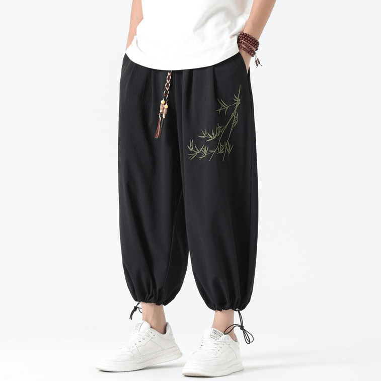 【中國直郵】 ASIS 風男士竹葉刺繡寬鬆寬腿哈倫褲-黑色 5XL