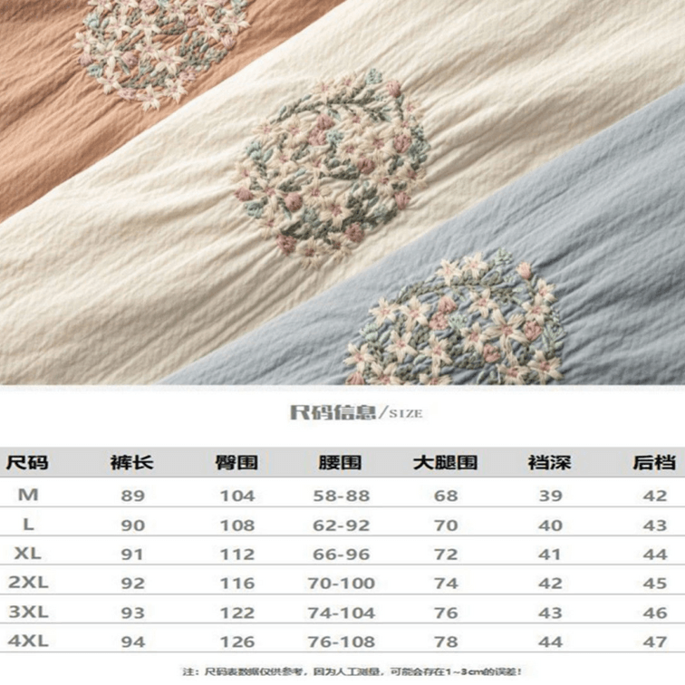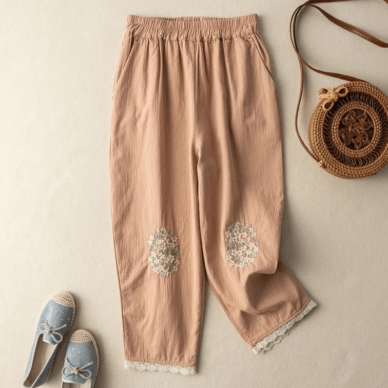 【中國直郵】ASIS棉麻刺繡復古哈倫褲九分休閒褲-卡其色 M