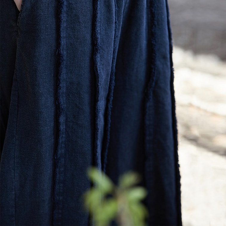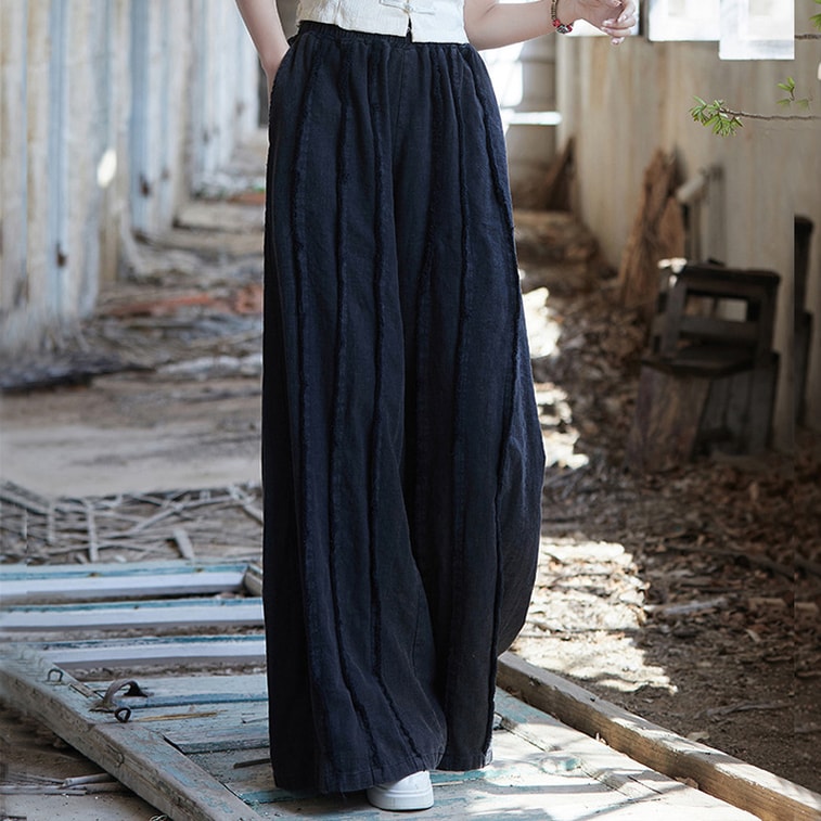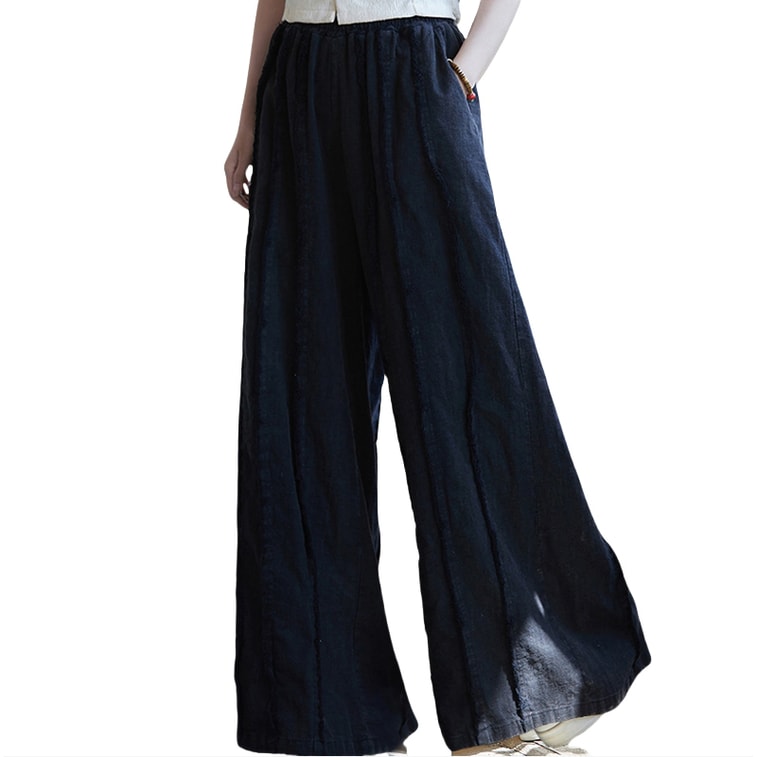 中國 ASIS國風復古拼接棉麻小姐長褲寬褲 黑色 均碼