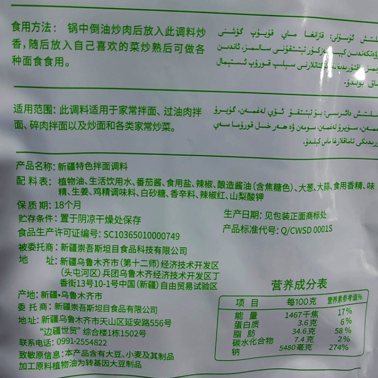 【中國直郵】 崇吾斯塔目 新疆特色拌麵調味料家常過油肉碎肉炒麵通用2-3人份80g*1袋