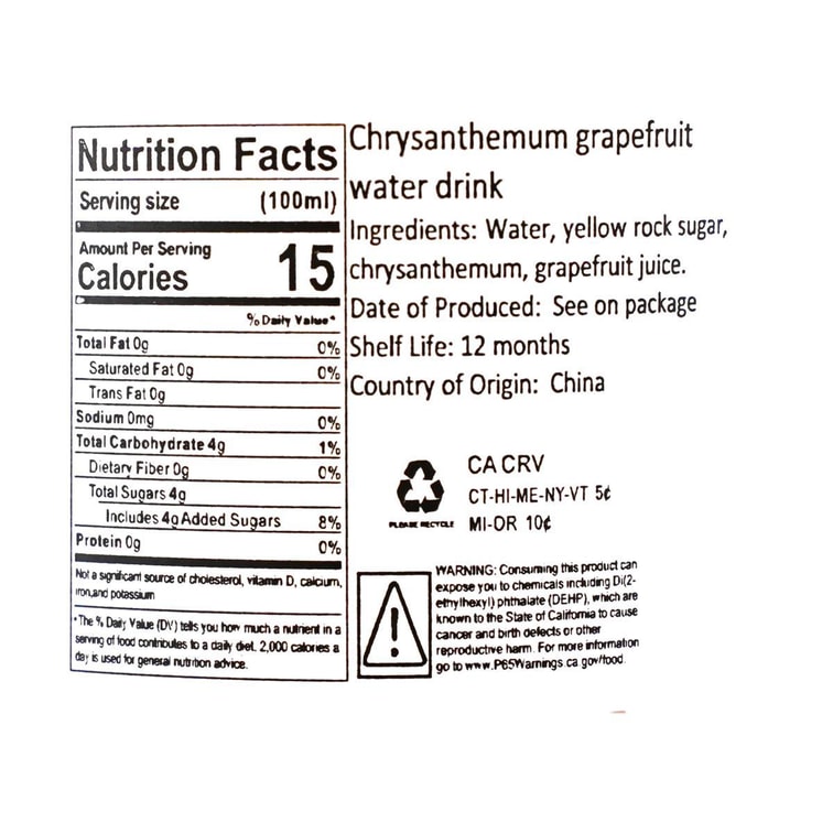 | 口味 | 菊花柚子水 |