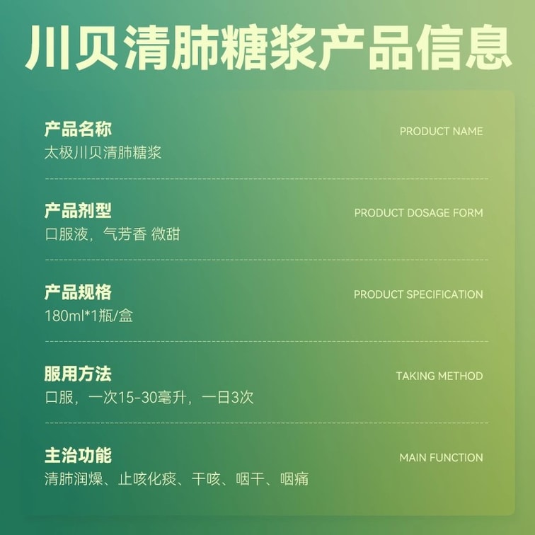 Chuanbei Qingfei Syrup Cough Suppressant Medicine 180mL per box