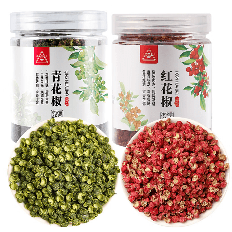 【中國直郵】川珍 青紅花椒罐裝組合45g+45g 香辛料 麻椒藤椒四川火鍋配料燒鹵料