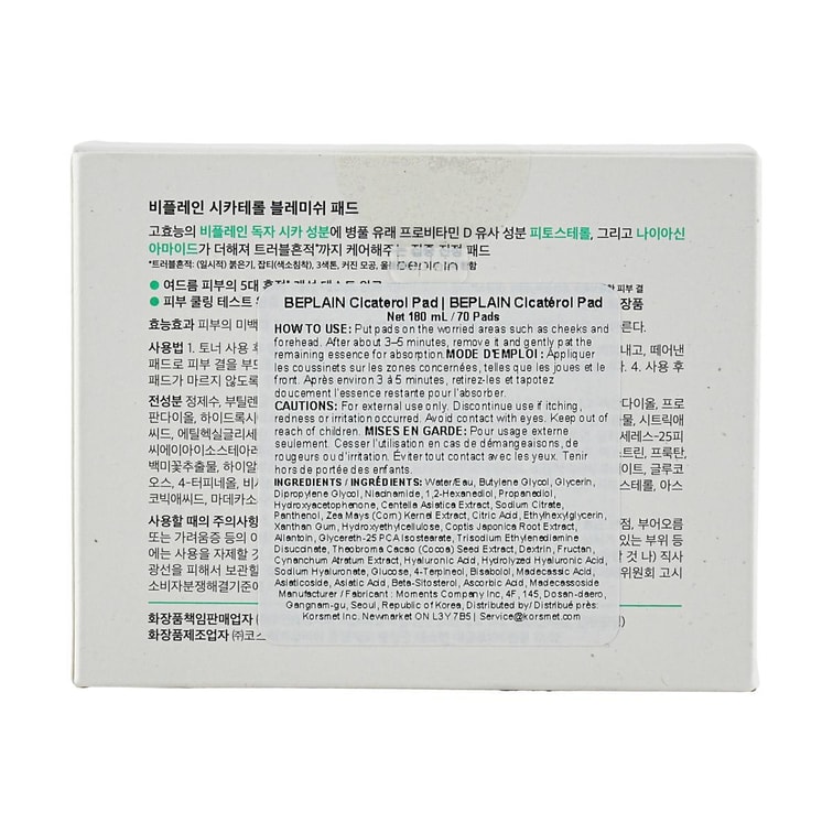韓國BEPLAIN碧菲音 積雪草淄醇淨透棉片 舒緩退紅 痘肌敏感肌適用 70片【一枝南南推薦】