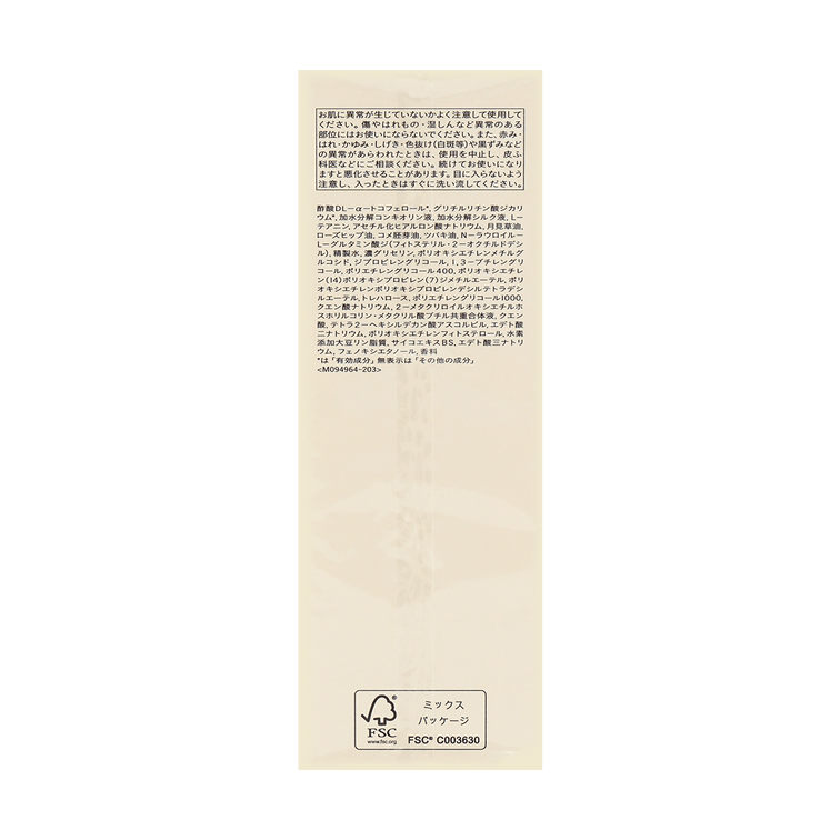 甘油、海藻糖、甘草酸二鉀、乙醯化玻尿酸鈉、稻胚芽油、狗牙薔薇果油、山茶籽油、水解蠶絲、水解貝殼硬蛋白