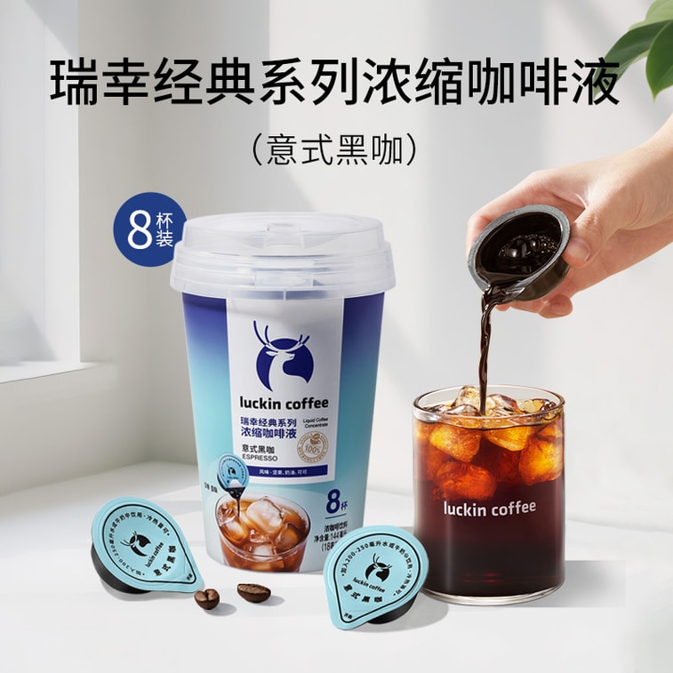 【中國直郵】 瑞幸咖啡 經典系列濃縮咖啡液 義式黑卡 0糖0脂 堅果奶油可可風味 18ml*8盒
