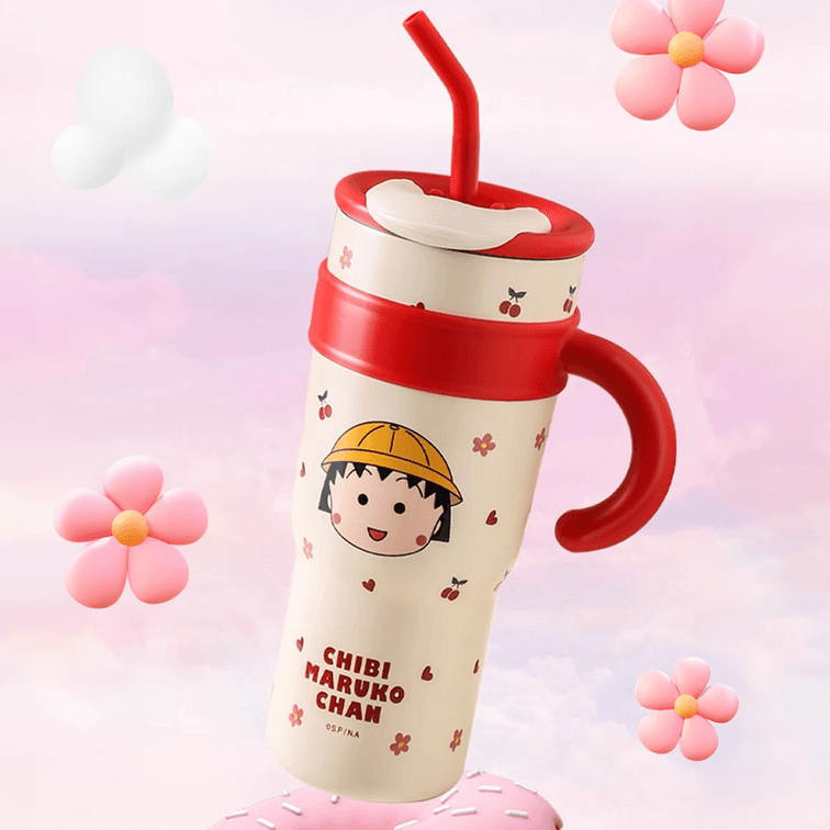 川島屋 巨無霸吸管杯冰霸杯 大容量保溫杯 316不銹鋼保溫保冷杯 1200ml【櫻桃小丸子聯名】