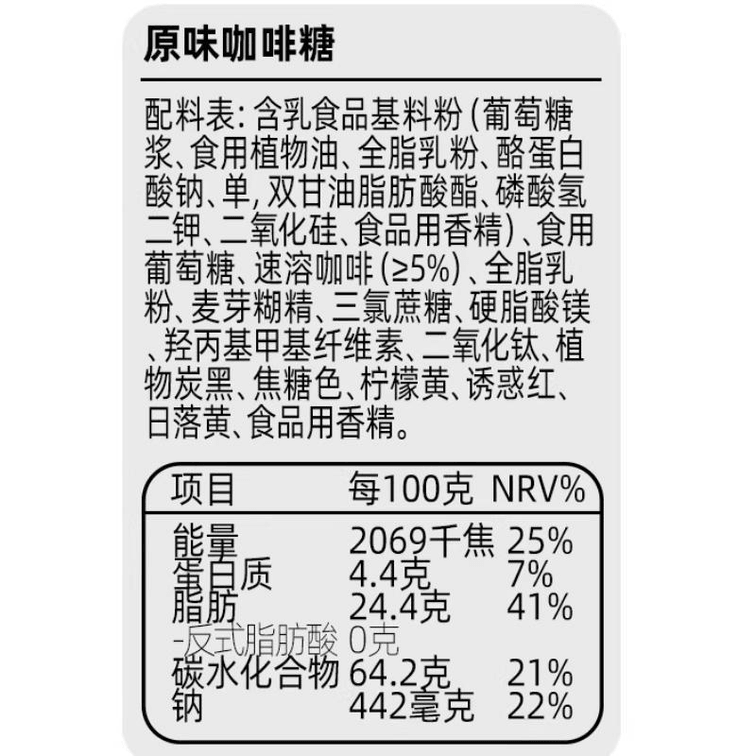 【中國直郵】 糖田米田 咖啡糖咀嚼壓縮黑咖啡可嚼糖果休閒點心即食原味100g*1盒