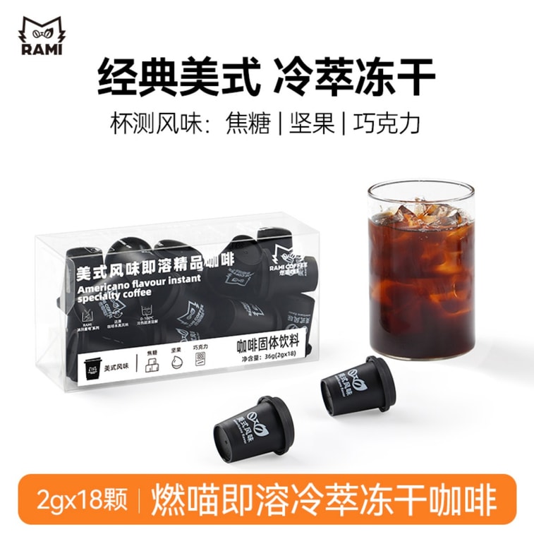 Cold Brew Instant Freeze-Dried Black Coffee American Style Medium Roast 18 Pods (36g) – Wake Up Your Day Classic Flavor