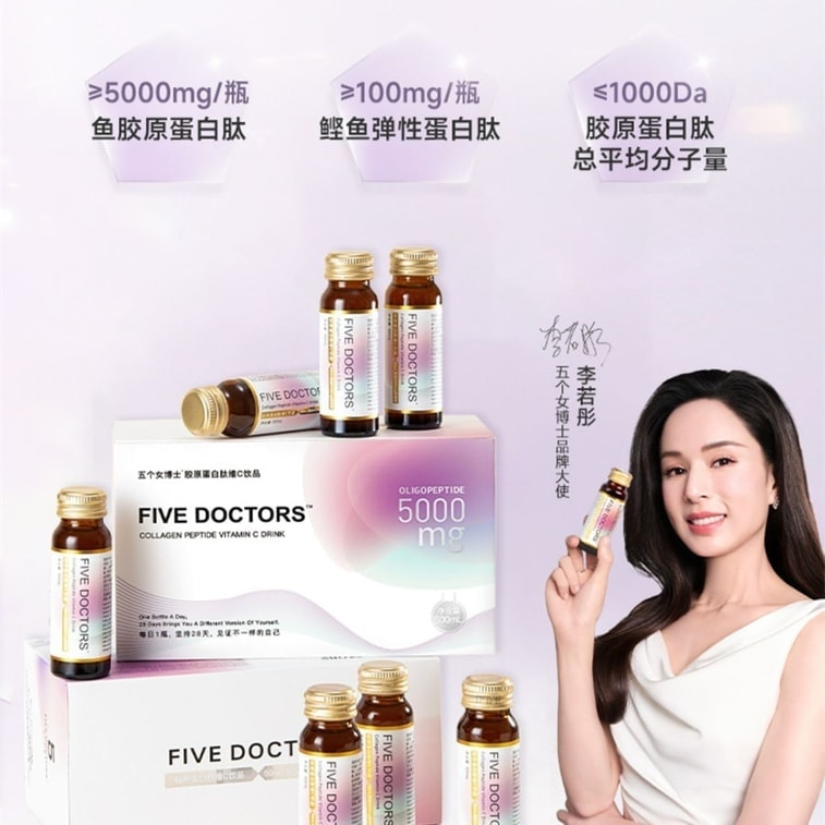 【中國直郵】 五個女博士 膠原蛋白勝肽液態飲 小分子勝肽口服液蛋白飲 50mL*10瓶/盒*2盒(明星代言-李若彤) | 亞米