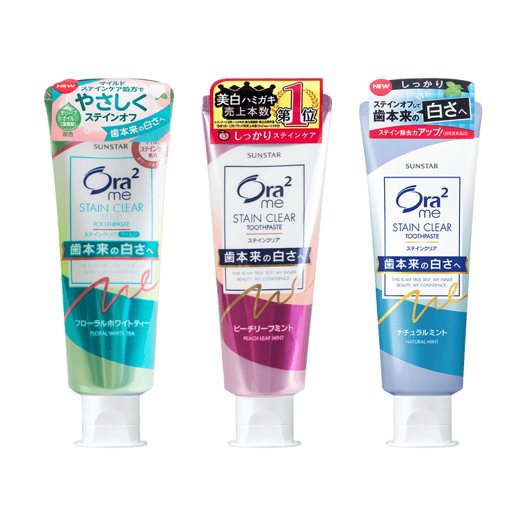 日本SUNSTAR ORA2 皓樂齒 深層清潔牙膏 鮮桃薄荷口味*1 清新薄荷味*1 薄荷白茶花味 *1 三種不同味道【三款體驗套裝】