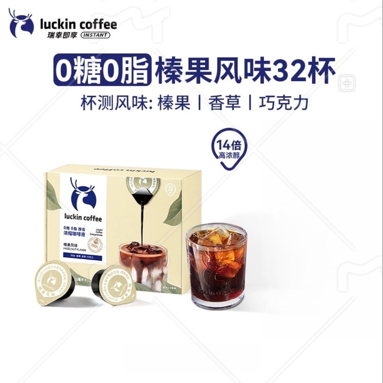 【中國直郵】 瑞幸咖啡 濃縮咖啡液 榛果風味【18mL*32杯/盒】