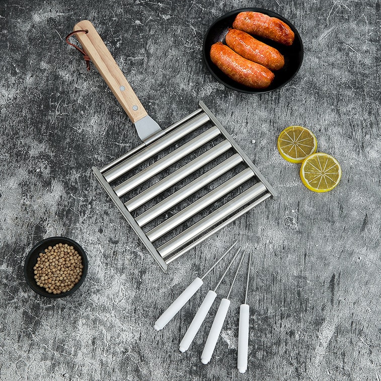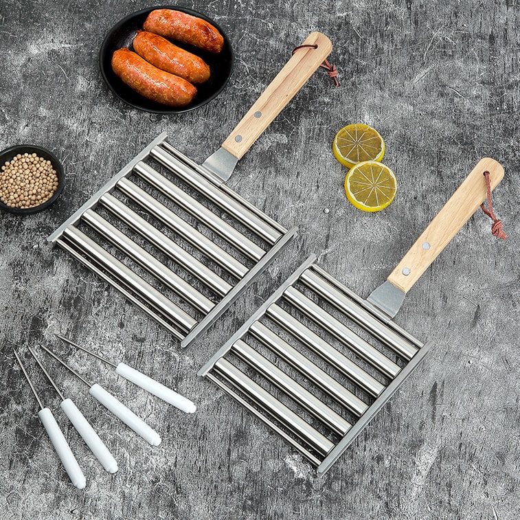 FOXTAIL 便利不銹鋼烤腸架套裝 滾動燒烤架 熱狗 火腿 可拆 便攜 -大號 1套*預計到達時間3-4週 | 亞米
