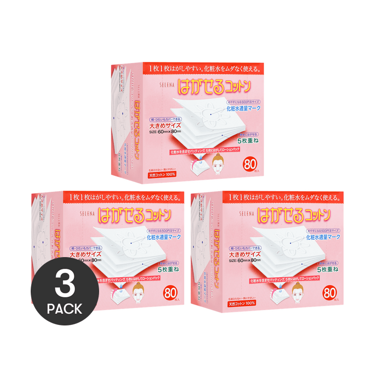 日本SELENA丸三 五層可撕式敷面化妝棉 80枚入