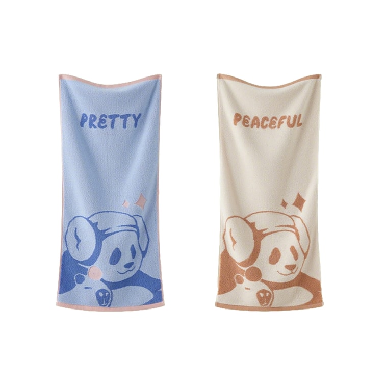 【中國直郵】 潔麗雅 7A純棉毛巾 2條 (藍色+棕色) 自在熊貓系列柔軟吸水成人家用洗臉毛巾