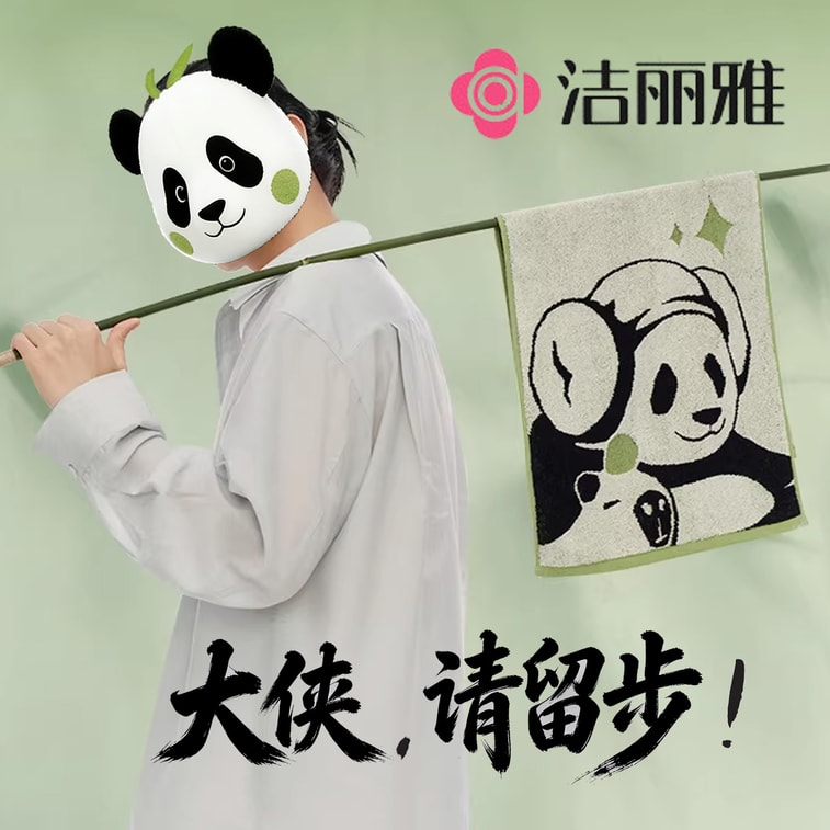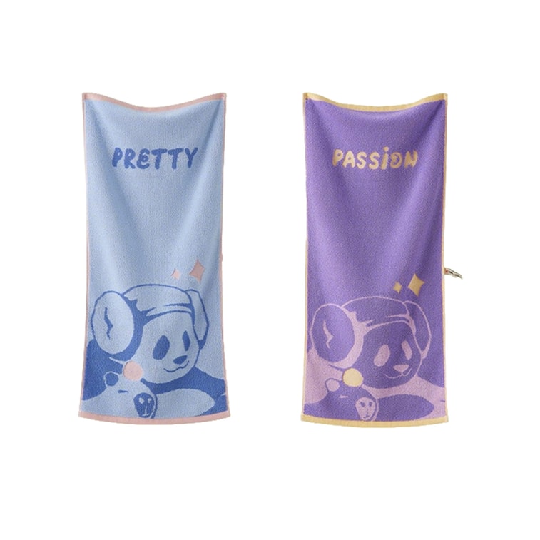【中國直郵】 潔麗雅 純棉毛巾 2條 (藍色+紫色) 加厚7A抗菌自在熊貓系列柔軟吸水成人家用洗臉毛巾