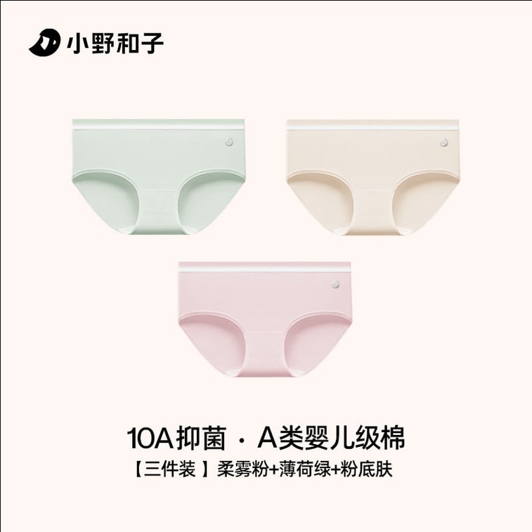 【中國直郵】 小野和子 純棉內褲 女 10A級抑菌 透氣 A類嬰兒棉 親膚不悶熱 綠色+粉紅色+膚色 L碼 3件裝
