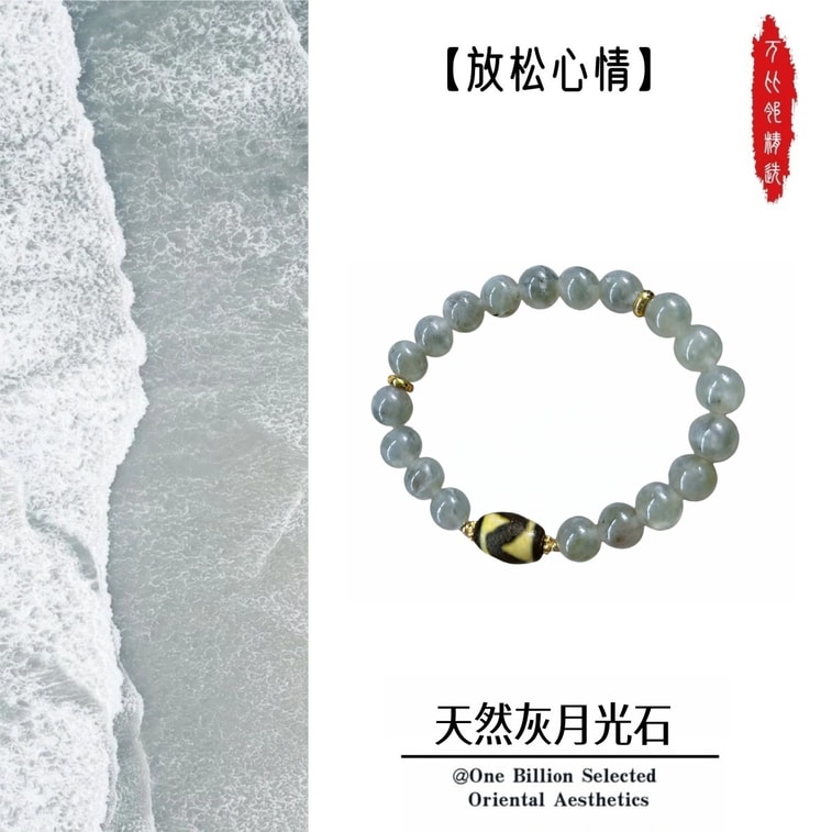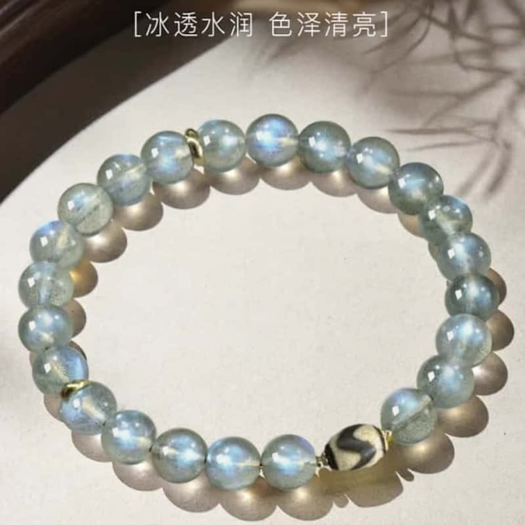 【否極泰來】藍光灰月光手串8mm 淨化磁場能量手環 天然月光石手鍊夢幻藍光流動搭配虎牙天珠 春節新年生日送禮佳選