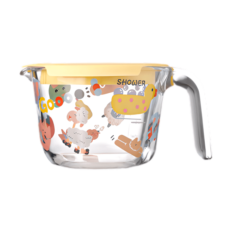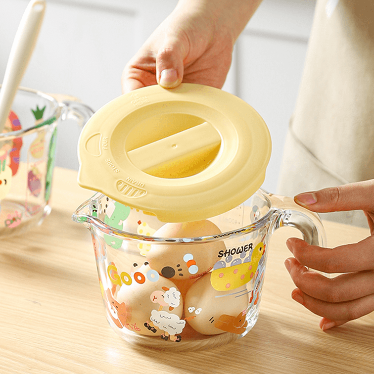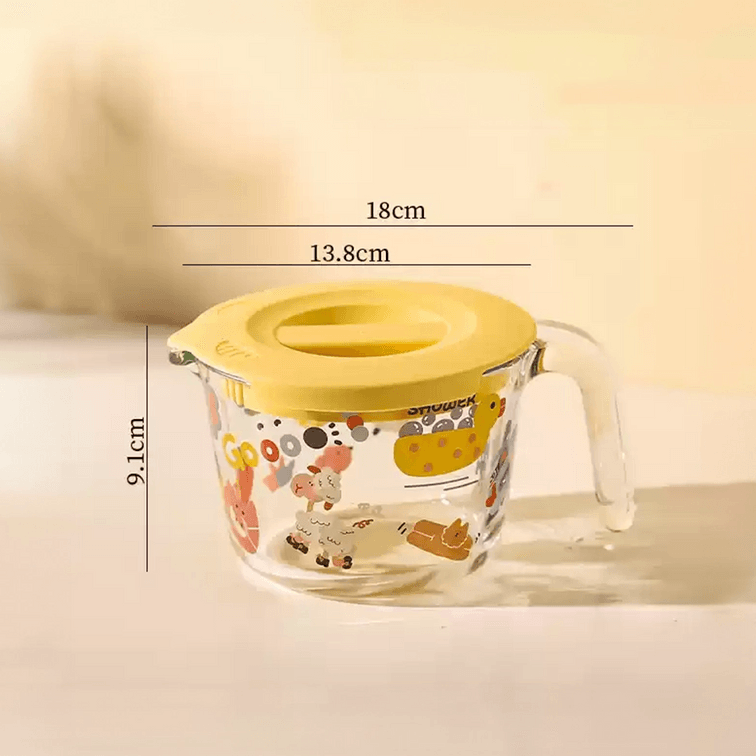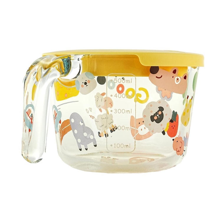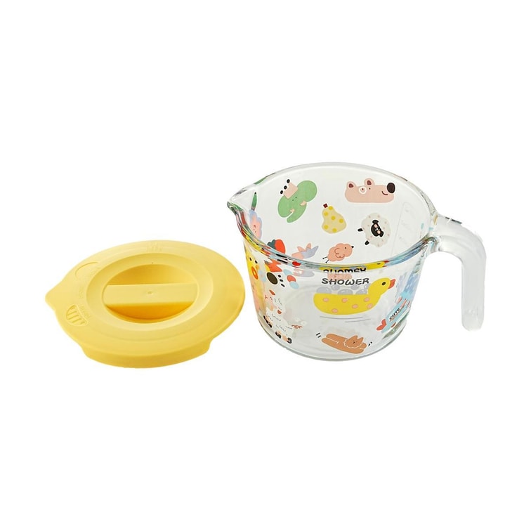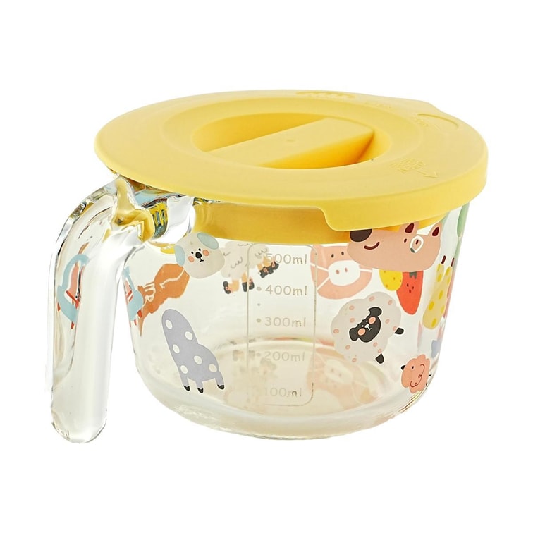 川島屋 附蓋與刻度早餐杯 玻璃量杯牛奶杯 繽紛派對 500ml