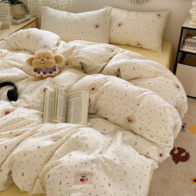 Lullabuy 奶油泡泡純棉床上四件套 床單被套枕頭套-Double/Queen Size