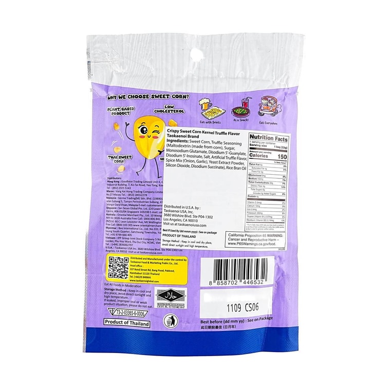 泰國TAO KAE NOI 小老闆 香酥玉米豆 黑松露口味 33g *6【6份超值裝】【無麩質素食非基因改造】