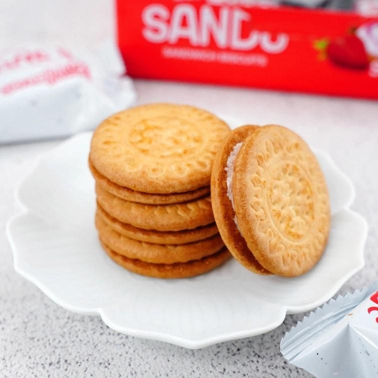 CROWN 韓國CROWN皇冠 草莓夾心餅乾 大盒裝 323g | 亞米
