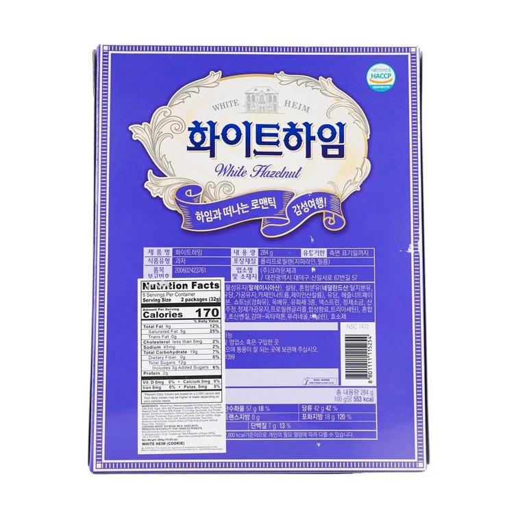 韓國CROWN 白巧克力榛果夾心華夫條 284g