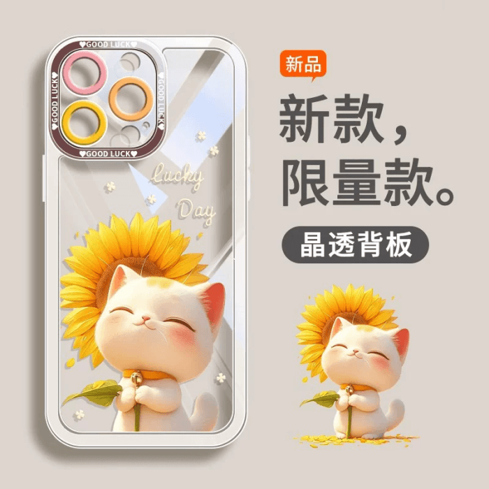 【中國直郵】 饕翡優選好物 可愛小貓蘋果手機晶透背板手機殼葵花貓咪白色1個(機型iphone17pro) | 亞米