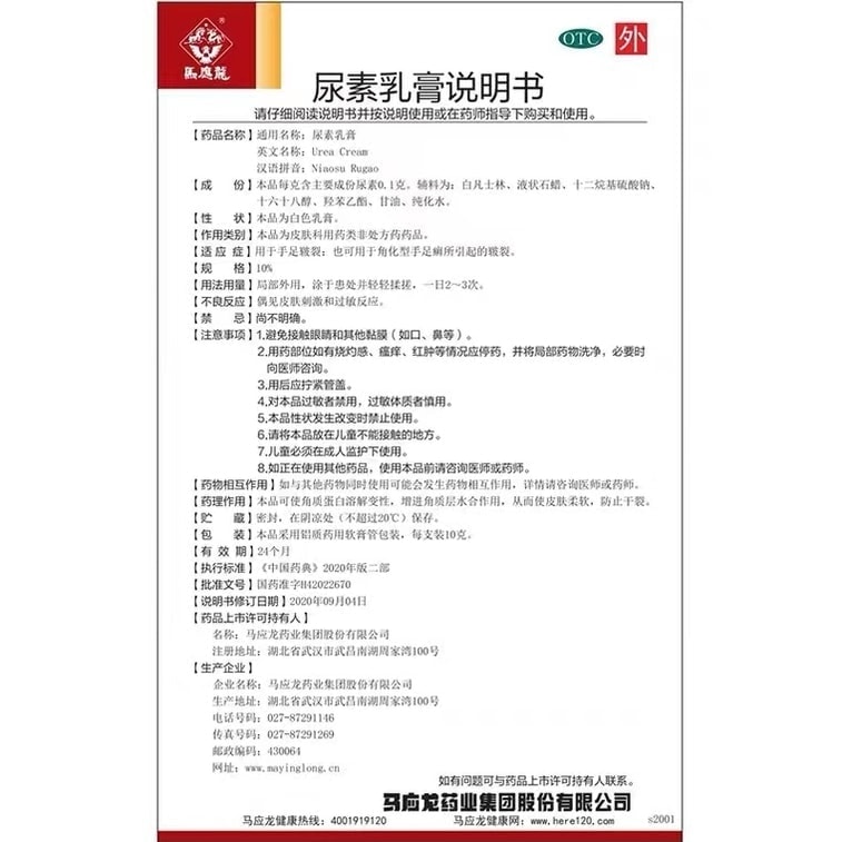 Urea cream is used for the cracking caused by keratotic tinea manus and pedis with a dosage of 10g per box